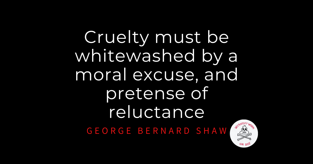 We see this everywhere in the work of work today. The system is abusive to those in it and yet they are told that are at fault. They lack ‘resilience’, they need more ‘grit’, they don’t have the right attitude, they don’t have a sufficiently strong work ethic. Burnt out? You don’t manage your work effectively, you need to make time for wellbeing, you need to eat better, exercise more, maybe try some yoga?