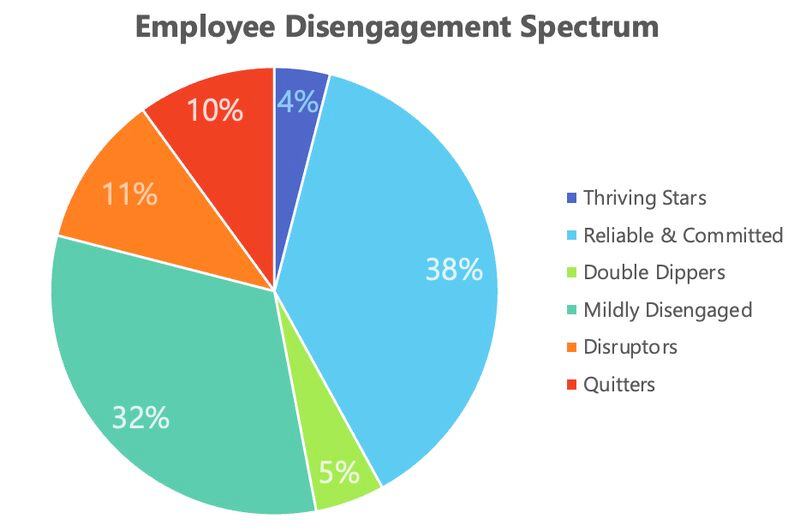 Unless employers reframe and reimagine the relationship they have with their employees, they will never improve engagement. The status quo is determined much more by the intrinsic motivation of people, the desire to do a job to the best of one’s abilities and to support your coworkers, than anything that the organisation does. That’s why the numbers don’t shift. They just reflect that about 40% of society likes to do whatever they do as well as they can.